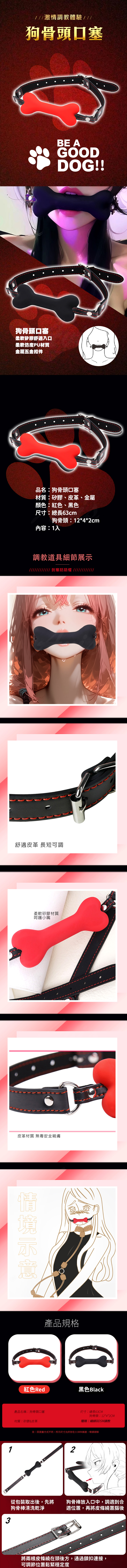 品名:情趣狗骨頭口塞|夫妻調情束縛嘴塞材質:矽膠、皮革、金屬顏色:紅色、黑色商品資訊尺寸:總長63cm狗骨頭:12*4*2cm内容:1入