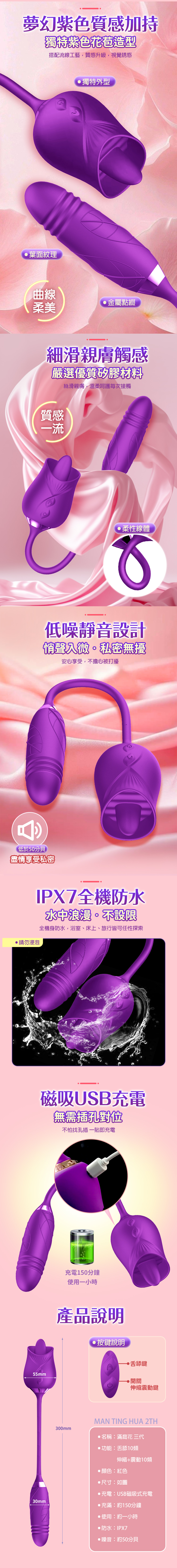 商品名稱:滿庭花3代|雙頭舌撩|伸縮震動棒 紫