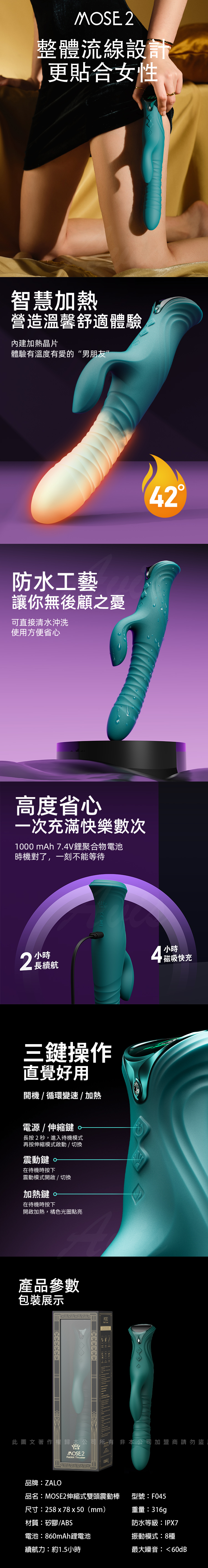 品名:Zalo Mose 2|雙頭加熱抽插按摩棒