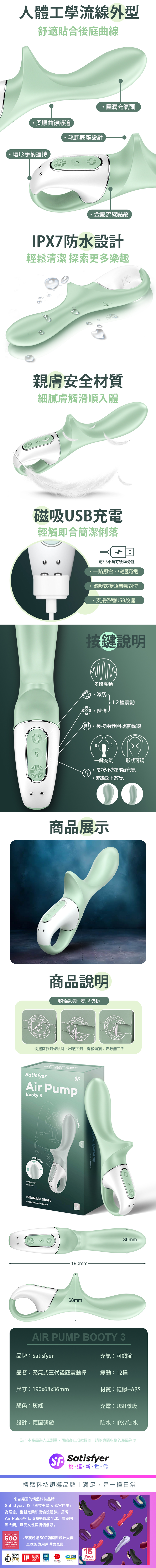 Satisfyer|Air Pump Booty 3|充氣式後庭震動按摩棒 灰綠